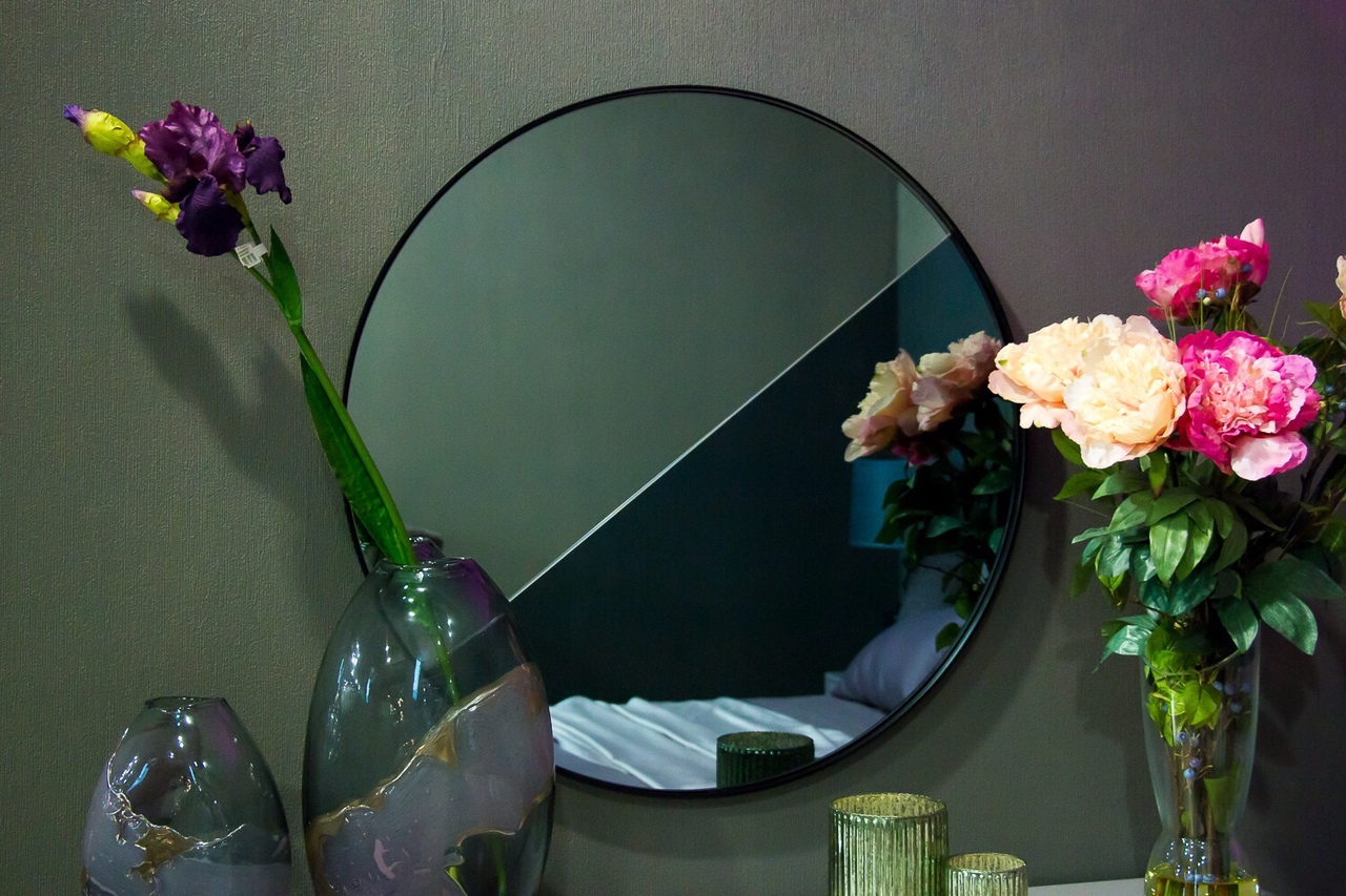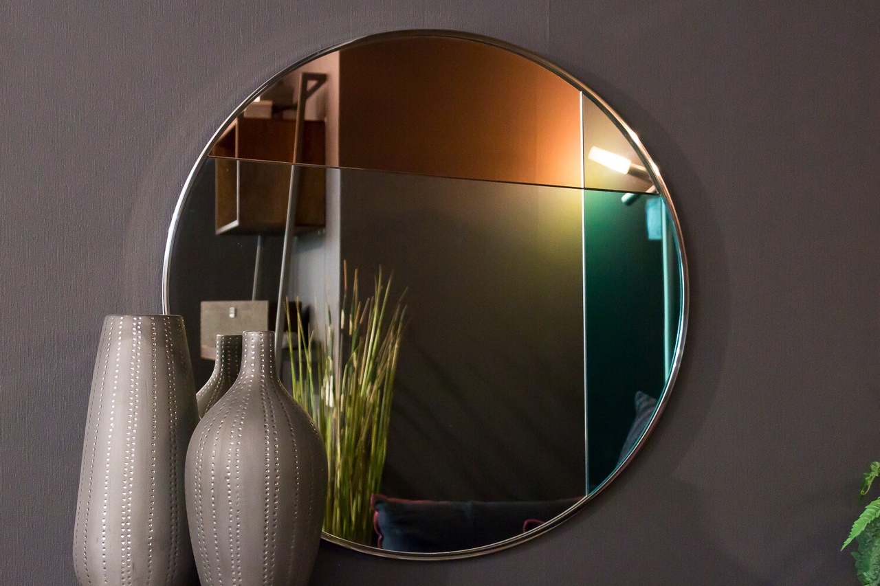 Круглые зеркала — последний тренд в дизайне интерьеров. Можно украсить стену одним зеркалом, подвесив его на крючке или на ремне (последний вариант особенно рекомендует наш дизайнер), а можно создать целую галерею из круглых зеркал разного диаметра. Это отличный способ декорировать пустую стену и визуально расширить пространство!
