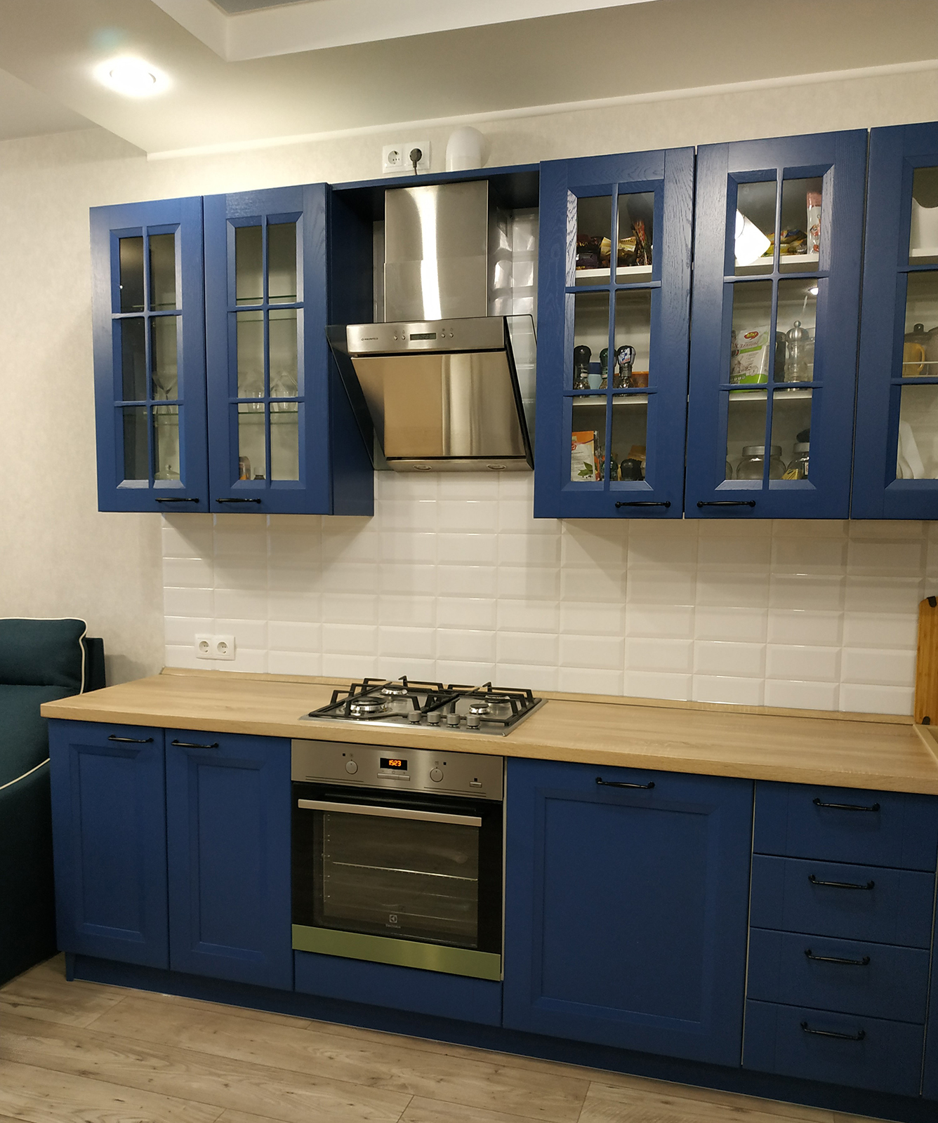В стоимость входят: петли с доводчиками BLUM, ящики тандембокс HETTICH, столешница и ручки, техника в стоимость не входит.